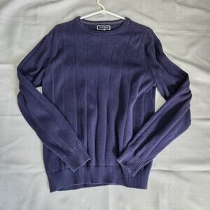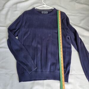 Stay warm and stylish with this classic Club Room navy blue sweater. Made from comfortable knit material, this sweater is perfect for layering or wearing on its own. It's in great condition and ready to be a staple in your wardrobe!