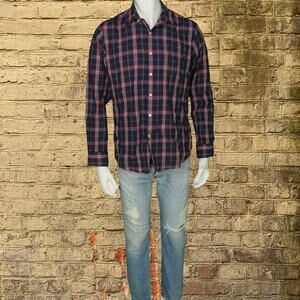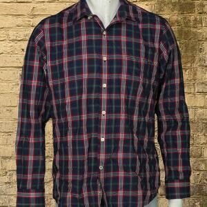 Club Room Plaid Long Sleeve Dress Button Down Shirt Medium