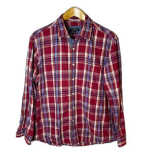 Club Room Red Blue Yellow Plaid Brushed Twill LS Button Up Shirt Size L