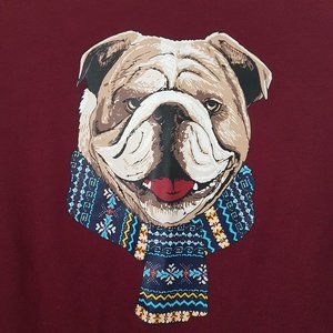 Club Room Men Sz S Red Plum Bulldog Scarf Graphic Christmas Crewneck Long Sleeve Top - NWT