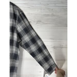 Item: Men's long sleeve button-up shirt in a black and gray plaid pattern