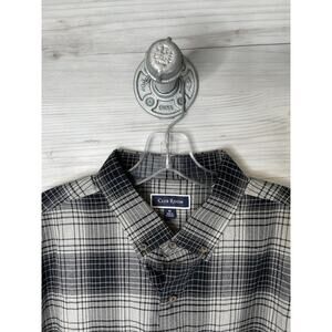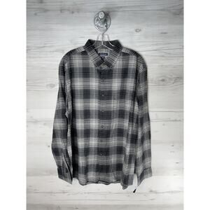 Club Room Shirt Mens Extra Large Black Gray Plaid Button Up Long Sleeve Stretch
