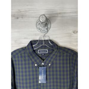 Club Room Shirt Mens Extra Large Blue Green Plaid Perform Poplin Button Down