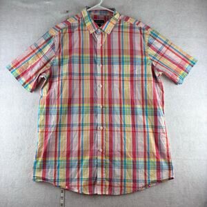 Club Room Short Sleeve Button Down Shirt Men's Large Madras Plaid Preppy Country