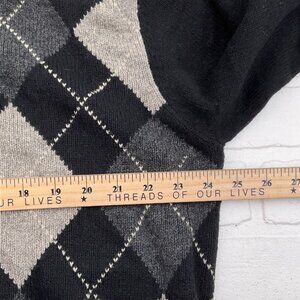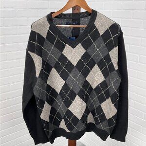Club Room Sweater Mens XLarge Black Gray Argyle Lambswool Relaxed Classic Preppy