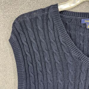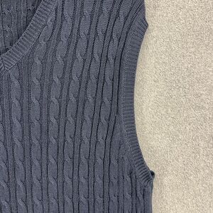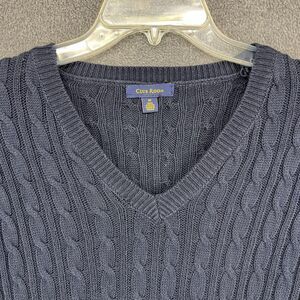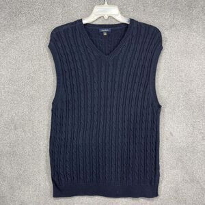 Club Room Sweater Vest Mens Medium Navy Blue Cable Knit V Neck Cotton Classic