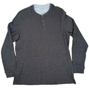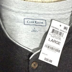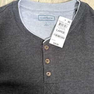New with tags, Club Room Thermal Henley Waffle Knit, 3 Button, Color is called "Dark Lead" Grey, Mens Size Large.