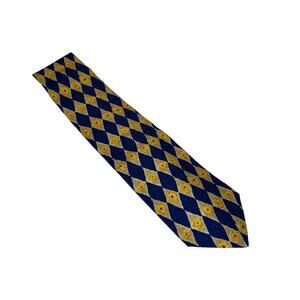 Club Room Tie, Royal Blue Yellow Diamond Argyle pattern, 100% imported silk