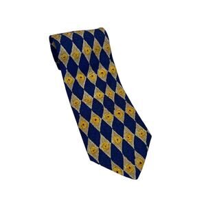 Club Room Tie, CR, Royal Blue Yellow Diamond Argyle pattern, 100% imported silk