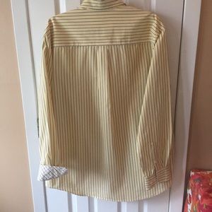 Comfortable Club Room long sleeve button down shirt with contrasting cuffs!yellow with blue stripes . Looks great with jeans or shorts! Size Large