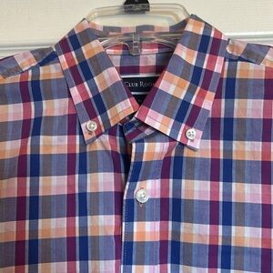 Club Room men’s pink plaid long sleeves button down shirt size medium