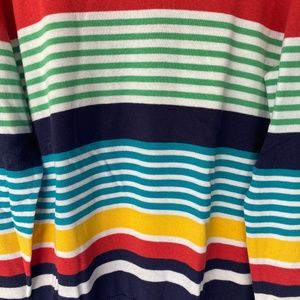 Macys Club Room 100% cotton long sleeve, crew neck sweater with stripes of white, navy, yellow, teal and green & red