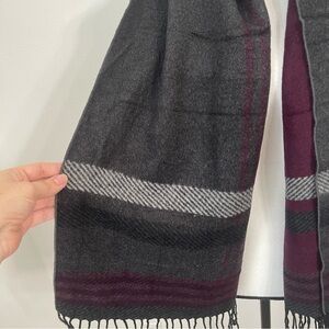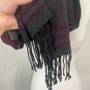Club Room unisex scarf 100% silk 60x12 Reversable plaid-Red Gray Black Fringe