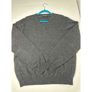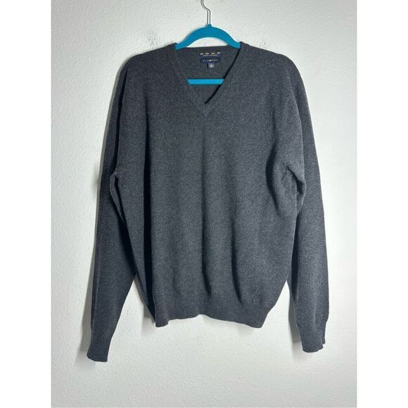 Club Room Luxury Cashmere Men's Charcoal Gray Vneck Sweater Pullover Size L