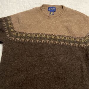 Thick and warm almost felted look so possibly was shrunk by previous owner but it’s still a very thick and cozy Crewneck for fall and winter