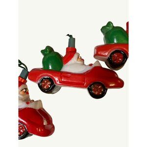 Santa's trading his sleigh for wheels in this whimsical light set. Brighten up your holidays with Santa cruising in sporty red cars.