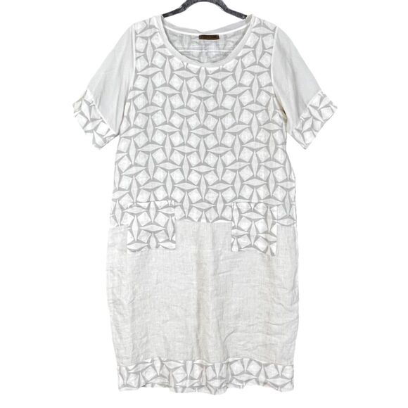 Club Voltaire Linen Linen Midi Dress Laganlook Loose Fit S/S Pockets Sz L Italy
