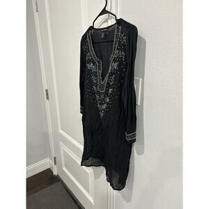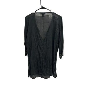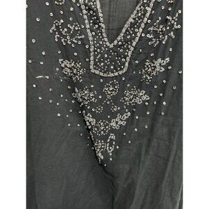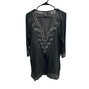Club Z Collection Beaded V-Neck Tunic Top Black Sz Large 3/4 Sleeve Embellished
