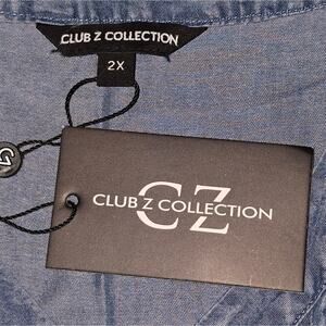 Club Z Collection Blue Chambray V Neck Pintuck Button Front Tunic Top Plus Sz 2X