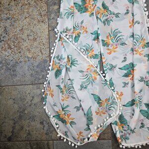 spring summer beach pool travel vacation cruise island backyard spa swimsuit coverup pants lightweight sheer floral drawstring waist split sides pompom details feminine girly gift gifts birthday holiday