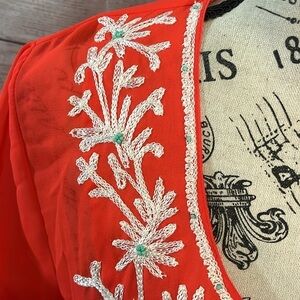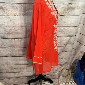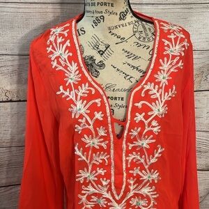 Club Z Collection Swim CoverUp Sheer Embroidered Long Sleeves Size Large