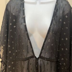 Club Z Collection Swim Coverup Size Large Black Silver Metallic Drawstring Waist