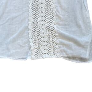 Club Z Collection White Cotton Gauze Swim Cover Up Tunic V-Neck 3/4 Sleeve, Crochet, Size Small