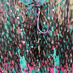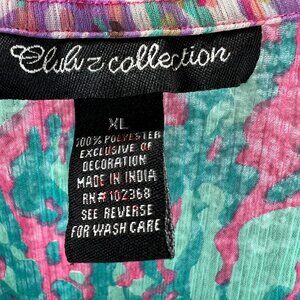 Club Z Collection Womens Top Extra Large Pink Blue Beach Cover Up Sheer Shirt