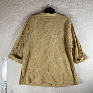 Club Z Collection Women's Yellow Button Up Flower Embroidered Top Linen Blend Size 1X 9751lagenlook