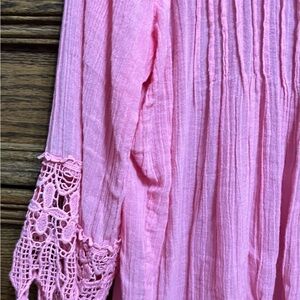 Club Z Collection pink 3/4 length sleeves cardigan, lightweight, 1X (runs small), sleeves and bottom have trim