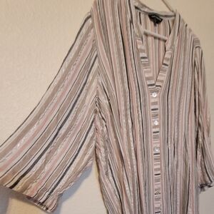 Club Z Metallic Silver Pink Striped V-Neck Blouse Plus Size 3x