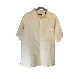 Club room, men’s linen blend, short sleeve, yellow textured shirt, size med