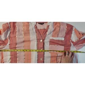 Club z collection pink metallic roll tab long sleeve lightweight button up 2X