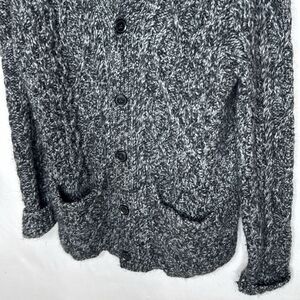 Club Monaco Black Cardigan Italian Yarn Sweater. Size Medium. Experience the ultimate in comfort and style with this Club Monaco black cardigan. Crafted with a cozy knit texture, this sweater features a shawl collar and long sleeves, making it an ideal layering piece for cooler days.
