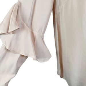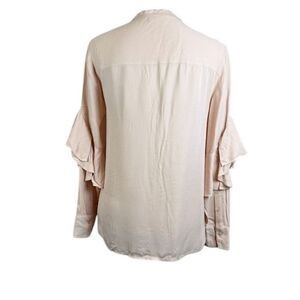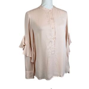 Club Monaco Ruffle Sleeve Blouse Half Button Front and Cuffs Pink Size Small