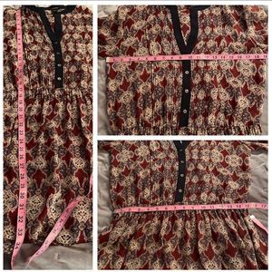 Club Monaco Sheer Silk Micro Pleat Front Drop Waist Dress Maroon Navy 4