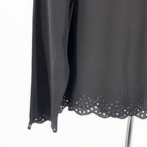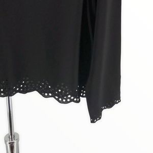 Club Monaco Silk Black Eyelet Trim 3/4 Sleeve Top Blouse