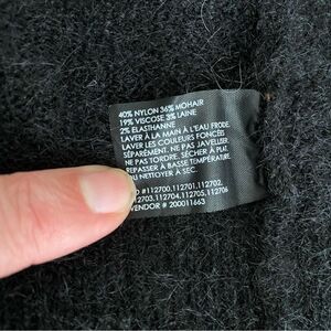 Beautiful Club Monaco sweater in large. The sweater is pre-owned and there are no stains or rips. Minor wear/pilling. The cardigan is 40% Nylon, 36% Mohair, 19% Viscose, 3% Wool, 2%Elastane