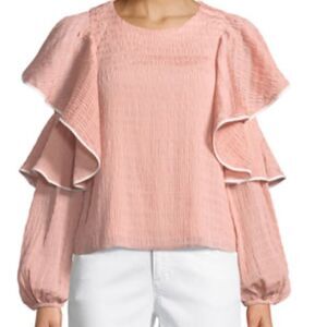 Club Monaco Pink Ribbone Ruffle Blouson-Sleeve