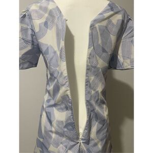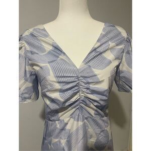 Club Manico Ruched front dress blue print A line silhouette above the knee zipper on the back size 0