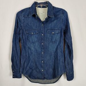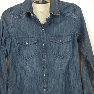 Club Monaco Rylie Shirt In Dark Washed Denim Size XS Women's Snap Front.Armpit