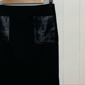 Club Monaco Black Pencil Skirt with Leather Patch Pockets
