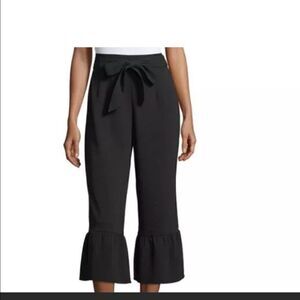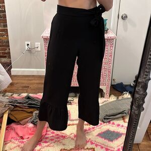 high rise. Fabric: Crepe Ruffled cuffs. Wide-leg cut cropped profile. in excellent condition.