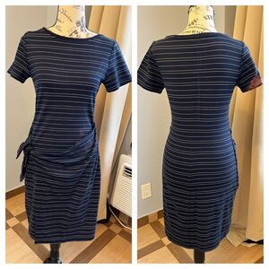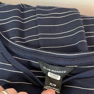 Blue and white striped jersey (61% Viscose, 34% Nylon, 5% Elastane).
