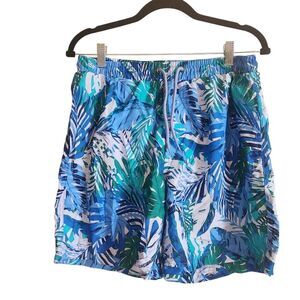 Excellent condition blue/aqua patterned swim trunks with back pocket. Lining intact. Additional pics or measurements joyfully provided on request!