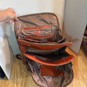 Made of high quality full-grain vegetable-tanned leather imported from Italy. High-end design showcases the backpack's vintage and practical look. Top U zippers for your convenience. Gun-tone hardware, buckles decoration for fashion and vintage appearance. Accordion-designed structure to ensure a large capacity. Handmade from the finest materials, luxurious detailing and immaculate finish, it will never go out of style.