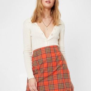 Super cute brand new with tags orange plaid mini. Perfect for spring marked size 6 but could fit 4/6.