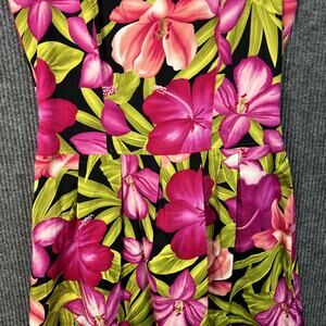 Clues Collection Womens Hawaiian Floral Fit And Flare Dress Size 10 Tropical