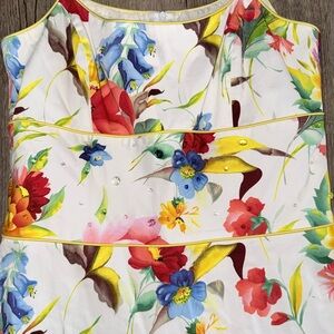 In excellent condition. No issues. Midsection has different colored and shaped beads. Fit and flare. Straps are not adjustable