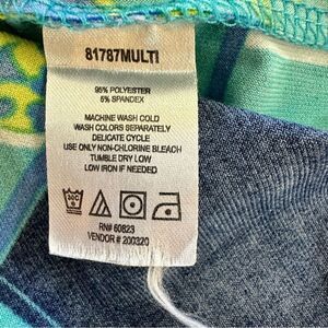 Clues Collections green & blue bold print dress size M. Drape back neckline, cold shoulder sleeves. Bold print. Very good preowned condition.